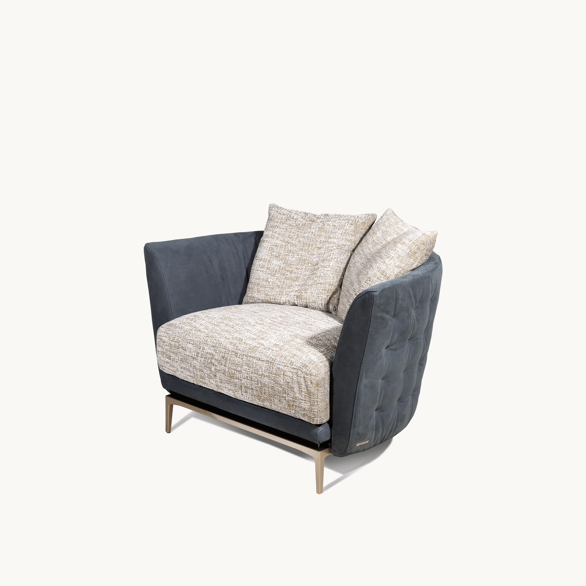 Opis: Legend to fotel, którego podstawa została wykonana ze sklejki wzmocnionej metalem z elastycznymi taśmami. Siedzisko wyściełane poliuretanem i pianką Memory Foam®, pokryte pikowaną warstwą puchu i uzupełnione luźnymi poduszkami z pierza otula zaokrąglone oparcie tapicerowane skórą lub tkaniną z ozdobnymi przeszyciami co podkreśla jego klubowy charakter. Podstawa i nóżki wykonane są ze stali nierdzewnej o satynowym wykończeniu.