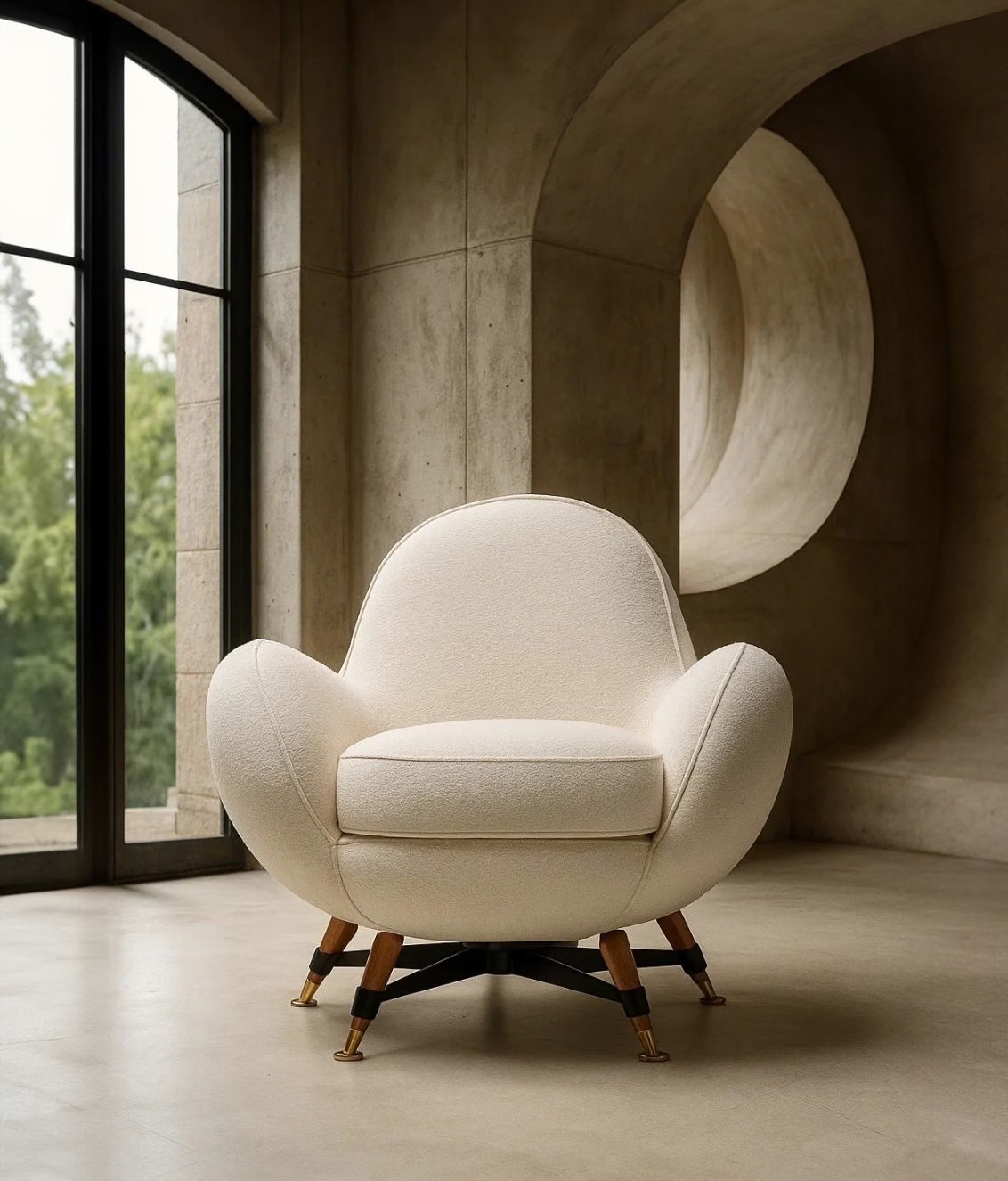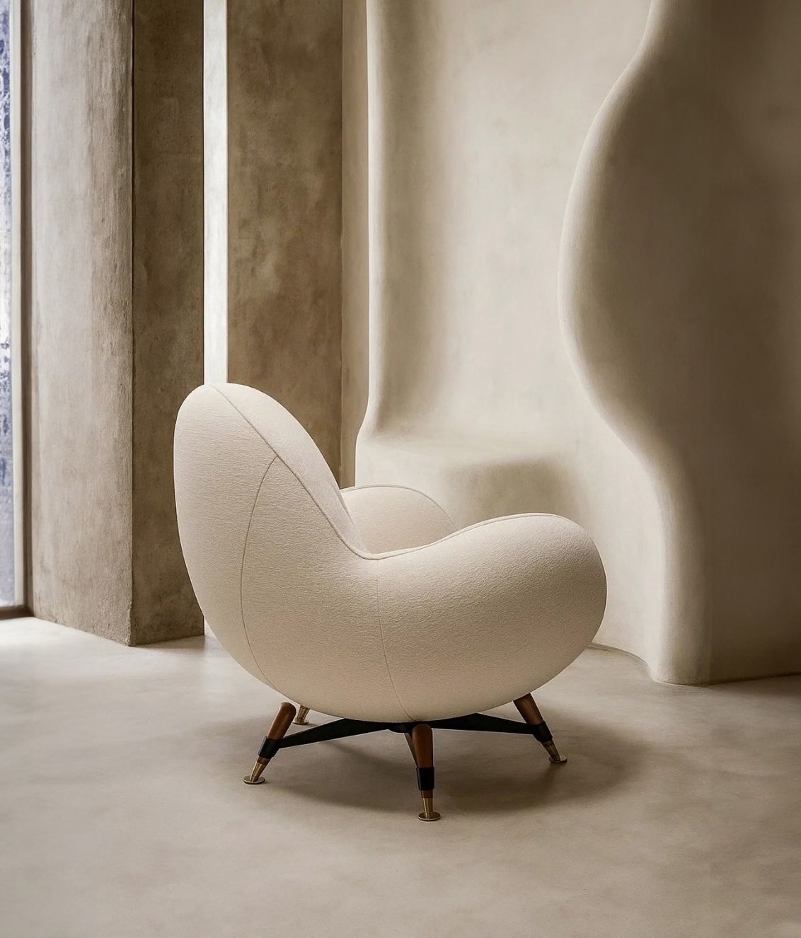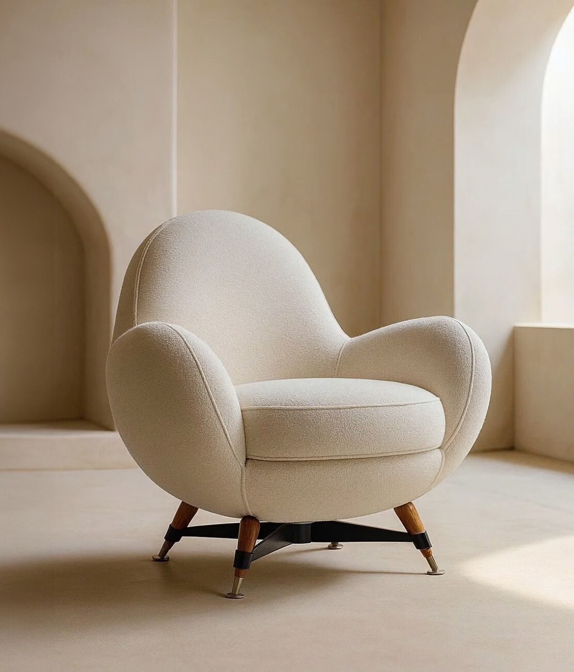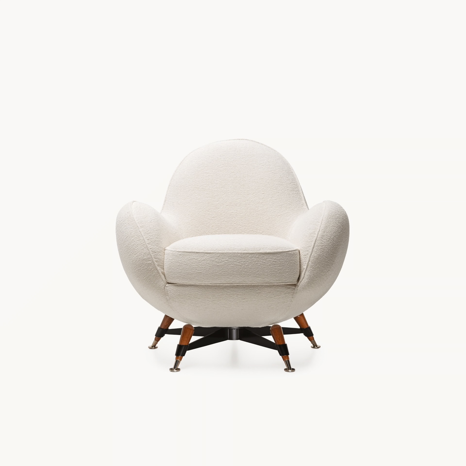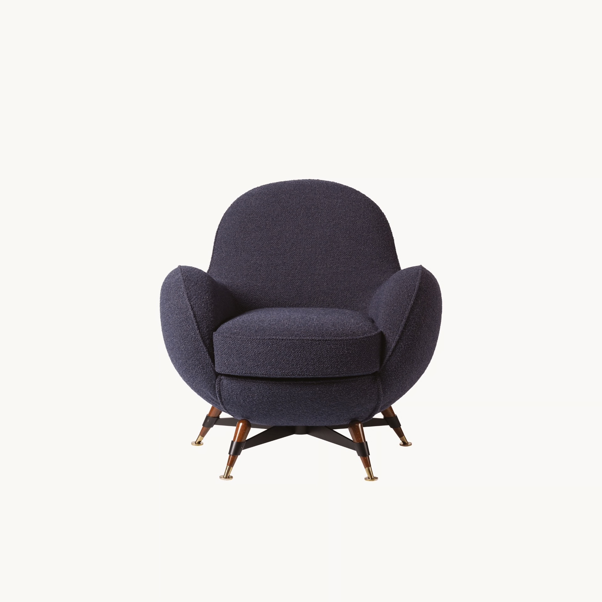 Opis: Mercury to tapicerowany fotel z elastycznej tkaniny, zaprojektowany tak, aby naturalnie dopasowywał się do kształtu ciała. Wewnętrzna konstrukcja z litego drewna i sklejki wspiera wypełnienie z poliuretanu o różnych gęstościach, pokryte warstwą włókna akrylowego. Podstawa z pięcioramiennej, czarnej, stalowej ramy z nogami z litego drewna i mosiężnymi końcówkami, dostępnej w różnych metalowych wykończeniach nadaje mu niepowtarzalny charakter.