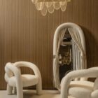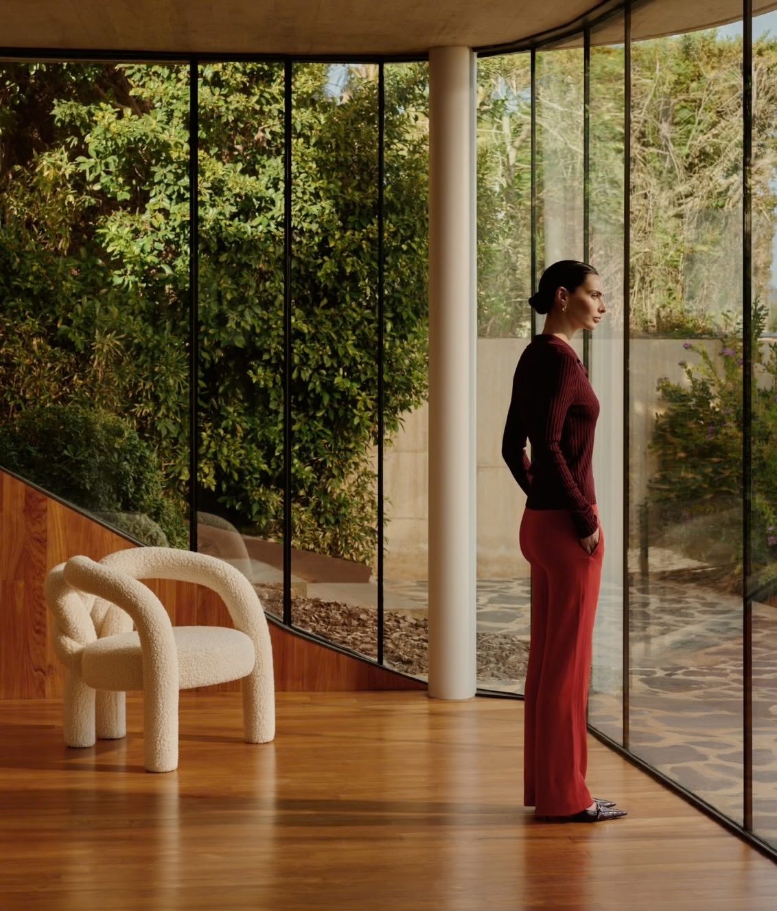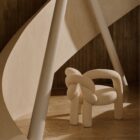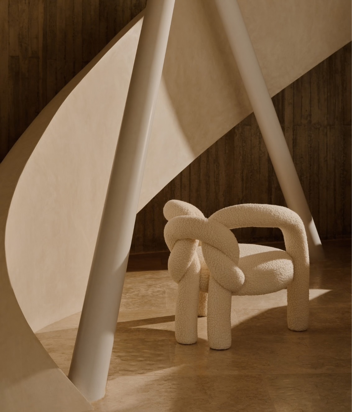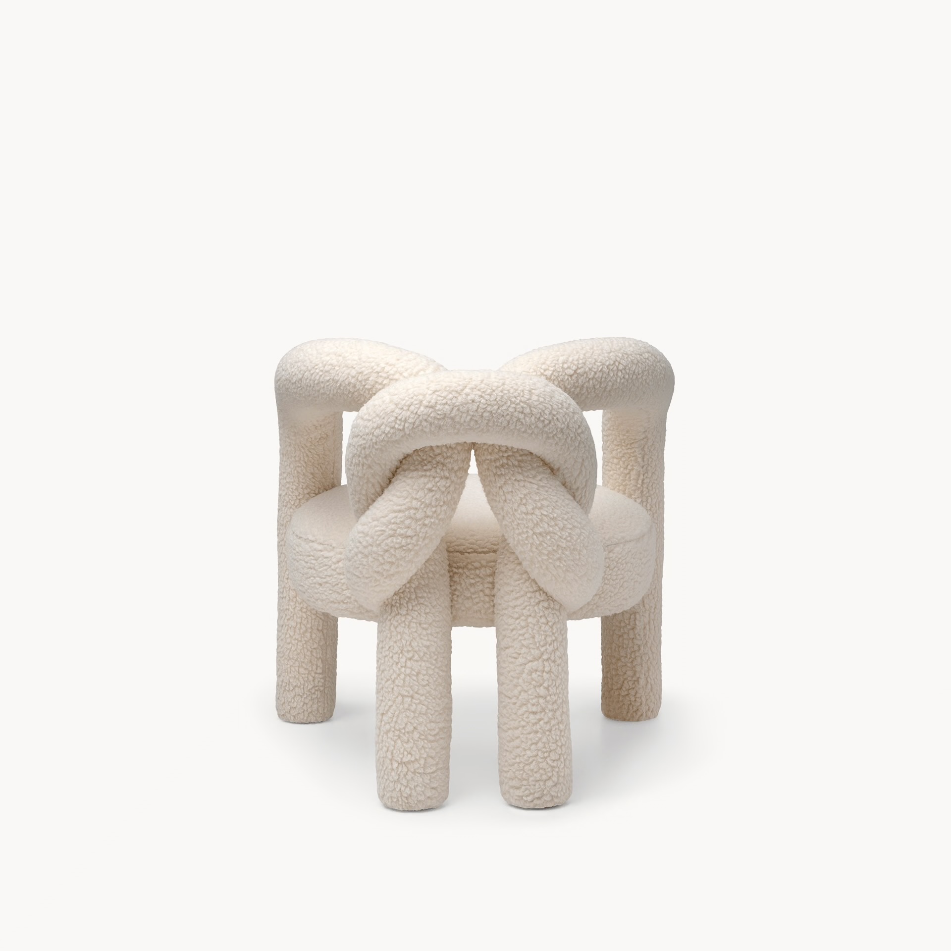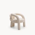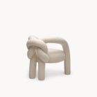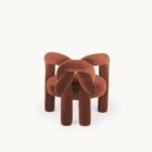 Opis: Shibari to mały fotel tapicerowany elastyczną tkaniną, z zakrzywioną metalową ramą o walcowatym kształcie, w pełni wyściełaną pianką poliuretanową o wysokiej gęstości. Przednie i tylne nogi łączą się z oparciem, tworząc przeplatający się element konstrukcyjny. Siedzisko, wsparte na elastycznej taśmie i wyściełane poliuretanem czyni go miękkim i wygodnym.