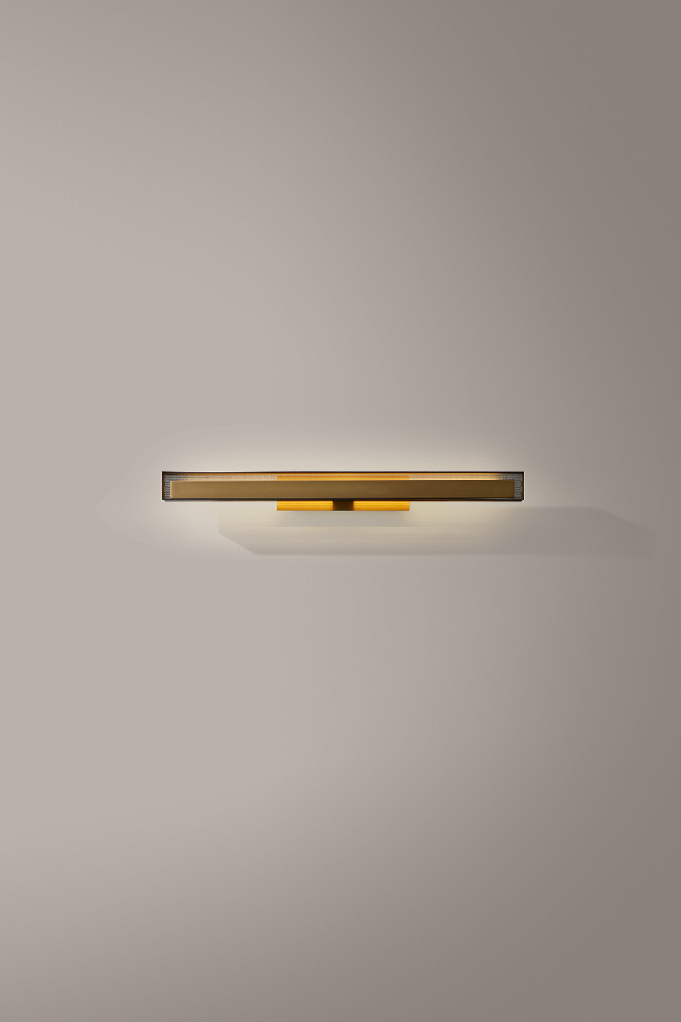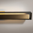 Opis: Surowe profile kinkietu są podkreślone światłem, które filtrując się przez mikrootwory, tworzy spokojną atmosferę. Jasny, polerowany rdzeń  kinkietu z mosiądzu znajduje się w matowym, czarnym lub złotym, metalowym kloszu z perforacją, przez, które sączy się przyjemne światło. Model Urban Lightline jest również dostępny w wersji wiszącej.