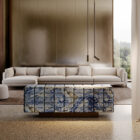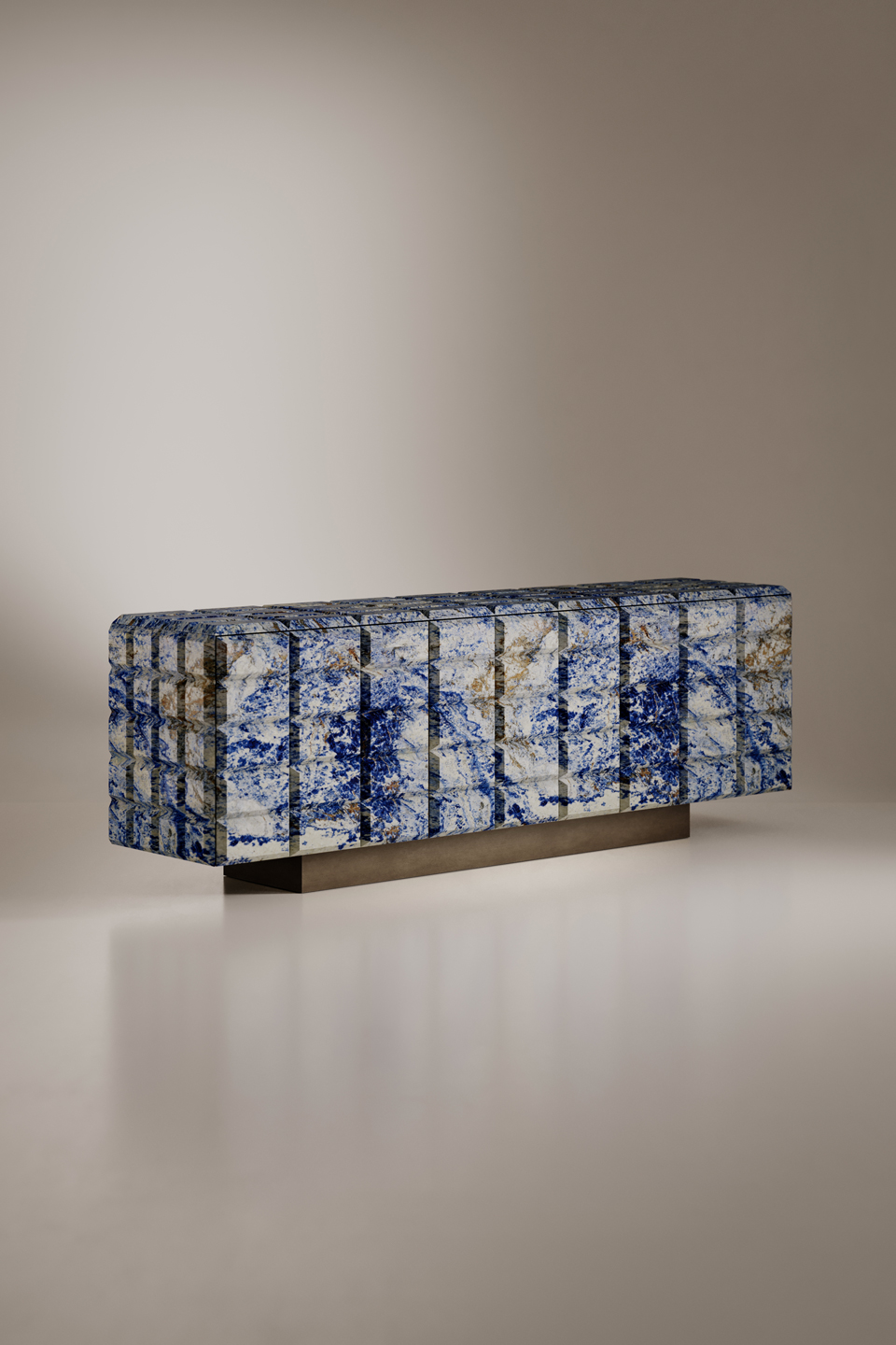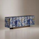 Opis: Komoda Star Flat dominuje w przestrzeniach swoją rzeźbiarską prezencją. Trójwymiarowa materialność została nadana pojedynczej płycie marmuru, spoczywającej na solidnej, metalowej, płaskiej podstawie. Połączenie różnych materiałów w komodzie, połączone wspólną ikonograficzną czystością, interpretuje dialog między rzemiosłem a designem.