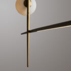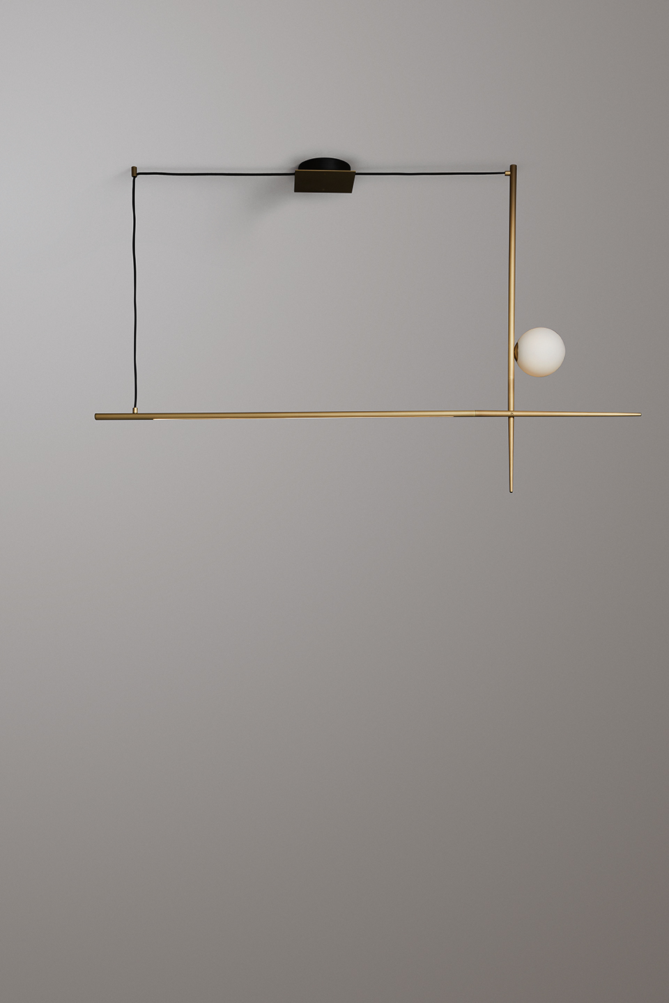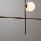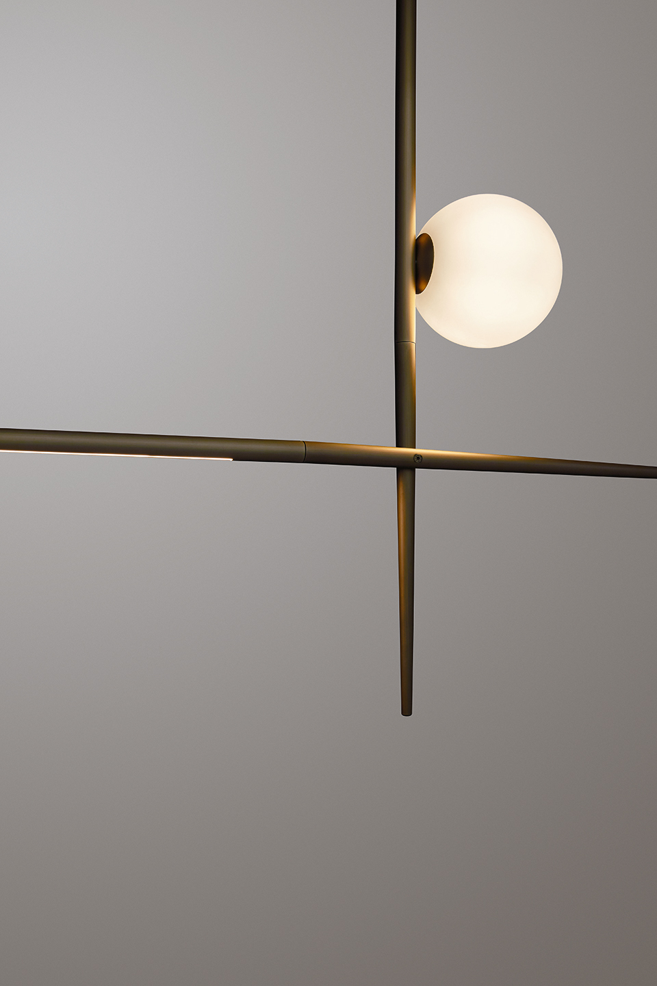 Opis: Lampa sufitowa Spear wypełnia przestrzeń elegancką obecnością, łącząc światło rozproszone z dmuchanej szklanej kuli Murano z oświetleniem LED. Delikatna, jasna kompozycja z polerowanego mosiądzu, polerowanego lub matowego czarnego niklu tworzy świetliste skrzyżowania, rozświetlając otaczającą przestrzeń. Z tego modelu dostępny jest również żyrandol.