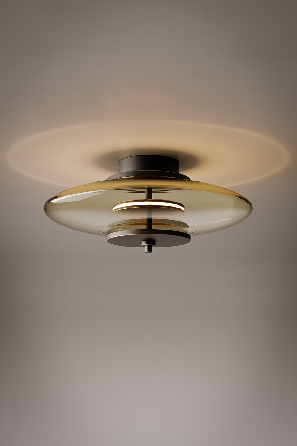 Opis: Lampa sufitowa Zen eksploruje napięcie między betonem a eterycznymi formami, tworząc wyrafinowane dyski światła. Zaprojektowana do montażu sufitowego, pozwala na tworzenie świetlistych aranżacji z pojedynczych lub wielu elementów. Dyfuzory ze szkła Murano, dostępne w kolorze dymnej szarości lub brązu oraz w trzech różnych rozmiarach, umożliwiają dynamiczne kompozycje. Jasna lub ciemna, polerowana konstrukcja mosiężna podkreśla i uwydatnia lekkość szkła. Kolekcja Zen jest również dostępna w wersji ściennej, wiszącej i stołowej.