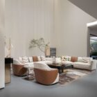 Opis: Sofa Bastian Still to konstrukcja z litego drewna, wyściółka z poliuretanu o różnej gęstości i elastyczne paski pod siedziskiem. Tapicerka skórzana lub materiałowa. Podłokietniki i oparcia ozdobione wstawką w kontrastowym kolorze i skórzanymi lamówkami nadają jej szykowny wygląd. Poduszka siedziska, zintegrowana z konstrukcją, wykonana z poliuretanu, pianki Memory Foam® i pierza zapewnia komfortowy odpoczynek a poduszki oparcia z poliuretanu i puchu są elementem dodającym jej przytulności. Ozdobne fryzy po zewnętrznych bokach i tylnej stronie oparcia z satynowanej stali nierdzewnej z logotypem nadają jej ekskluzywny charakter.