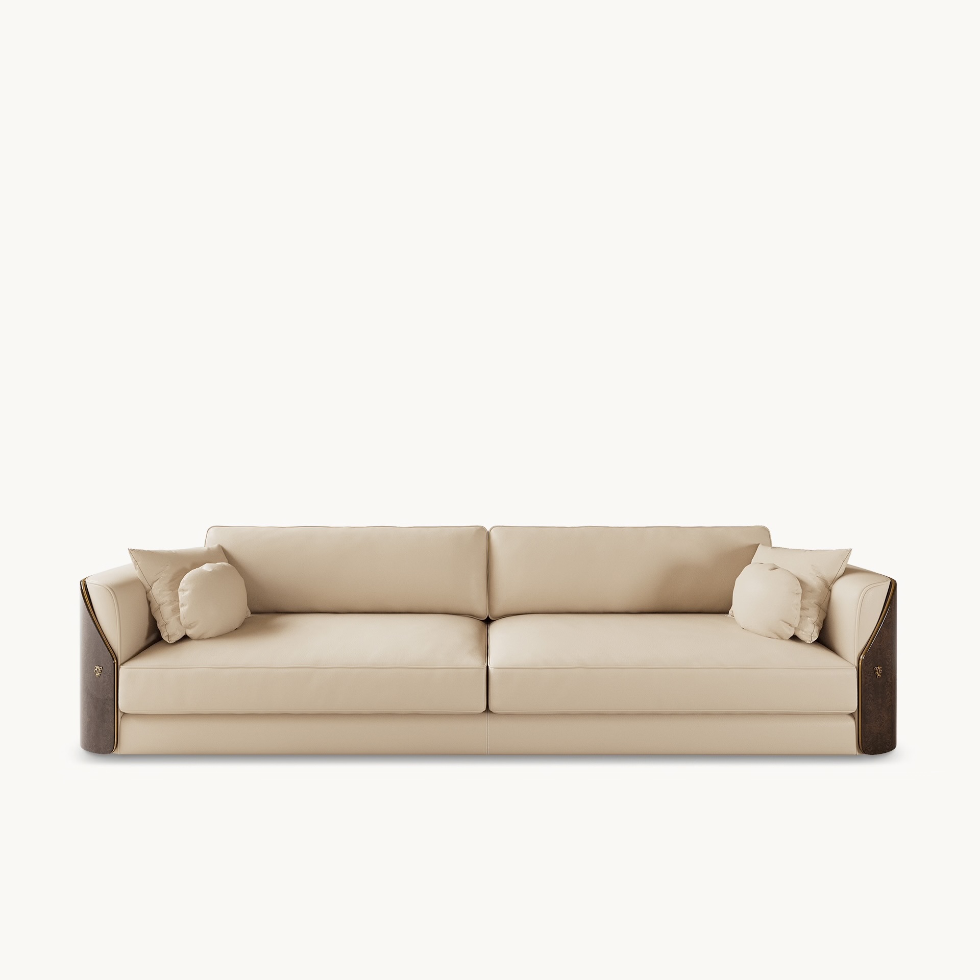 Opis: Sofa Fitzgerald tapicerowana skórą lub tkaniną, zamknięta w ozdobnej ramie z giętego i fornirowanego drewna, ozdobionej metalowym profilem. Siedzisko wyposażone w skrzyżowane elastyczne taśmy, podtrzymuje wyjmowane poduszki z poliuretanu o zróżnicowanej gęstości, pianki Memory Foam® i puchu. Poduszki oparcia są wypełnione mieszanką puchu i elastycznego poliuretanu co sprawia, że są nie tylko miękkie ale i zachowują swoją formę.