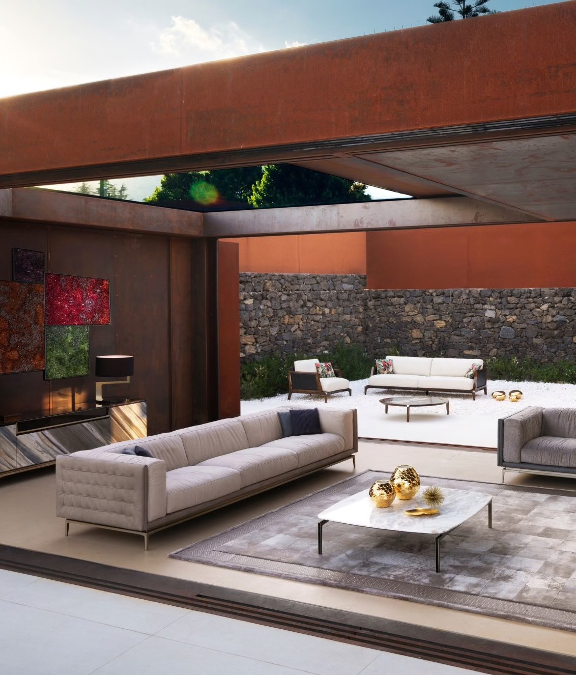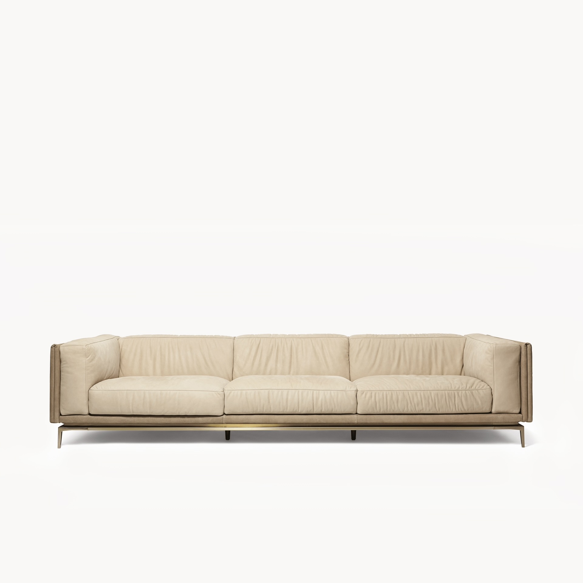 Opis: Sofa Legend z drewnianą ramą i elastycznym zawieszeniem, wyróżniająca się pikowanymi w stylu “wallet-style” podłokietnikami i oparciami, obitymi skórą lub tkaniną to uosobienie elegancji i komfortu. Poduszki oparcia i siedziska wypełnione poliuretanem o zróżnicowanej gęstości, pianką Memory Foam® i puchem dają uczucie odprężenia. Satynowa stalowa podstawa nadaje jej lekkości i nowoczesnego charakteru.